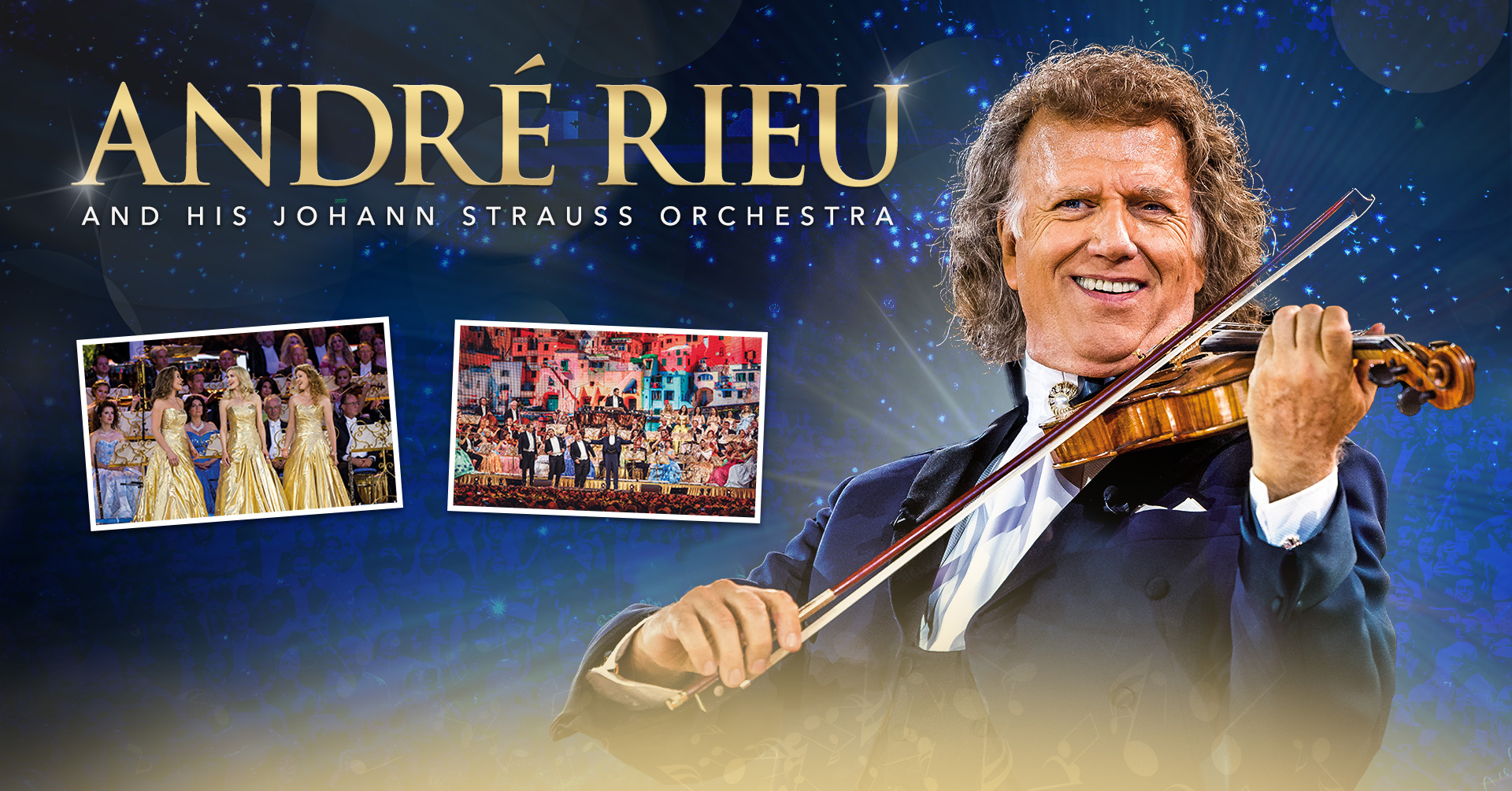 Der charismatische Niederländer, der am 1. Oktober seinen 75. Geburtstag feiert, gehört mit über 40 Millionen verkauften Alben, rund 500 Platin-Auszeichnungen, fast 10 Million Facebook Fans, milliardenfachen Aufrufen auf YouTube und jährlich über 700.000 Zuschauern seit langem zu den erfolgreichsten Live-Acts der Welt. Rieu besitzt vier Bühnen und sämtliche Instrumente vierfach, um lange Transportwege zu überbrücken. Im 100-köpfigen Tournee-Tross reist er nicht nur mit dem größten privaten Orchester der Welt, mit Chor, Solistinnen und Solisten, sondern auch mit eigenen Köchen sowie einem Arzt und einem Fitnesstrainer. 2024 führen ihn über 80 Konzerte durch ganz Europa, Mexiko, Kolumbien und Chile.