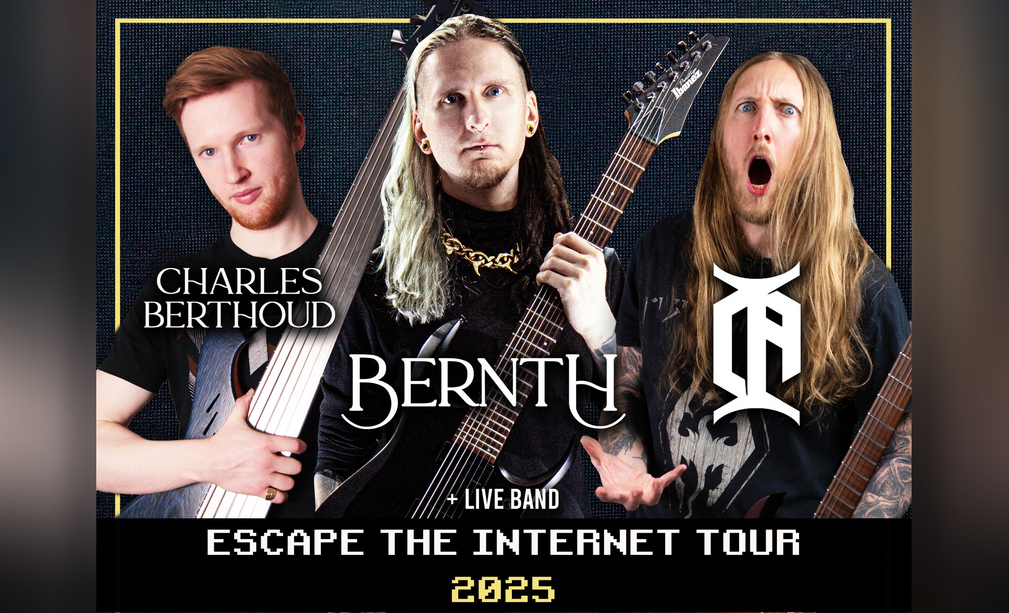 Bernth and Charles Berthoud have already tested the waters with three sold-out shows in Reunion in April 2024, receiving rave reviews from attendees. With a live band and fellow guitarist Ola Englund in tow, the „Escape the Internet Tour 2025“ promises to deliver a spectacular show featuring material beloved by fans of all three artists‘ YouTube channels.