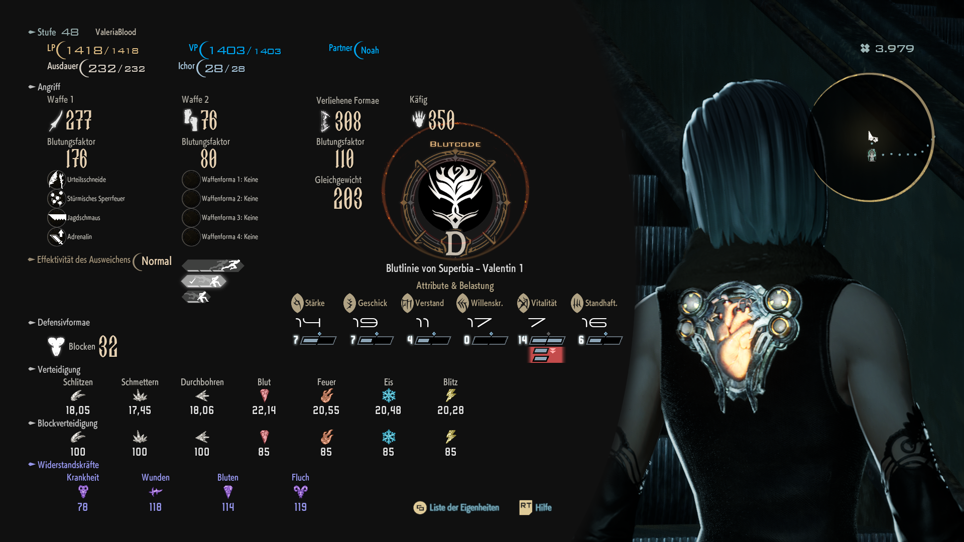 Neben eurem Level definiert eurer Blutcode eure weiteren Eigenschaften. Diese erhaltet ihr durch freigeschaltete Partner, hochstufen niedriger Blutcodes oder voranschreiten in der Geschichte. Dabei definiert das klassische Bewertungssystem die Wertigkeit eines Codes beginnend von E (niedrigste Stufe) bis S (höchste Stufe). Ihr könnt euren Code jederzeit außerhalb eines Kampfes wechseln und erhaltet sofort alle positiven wie negativen Buffs abhängig von eurem Basislevels. Um einen Blutcode zu meistern, müsst ihr ausreichend Gegner derselben Stufe oder höher besiegen. Das Meistern bringt euch zusätzlich eine Belohnung und oft den nächsten Blutcode der Serie mit einer höheren Stufe.