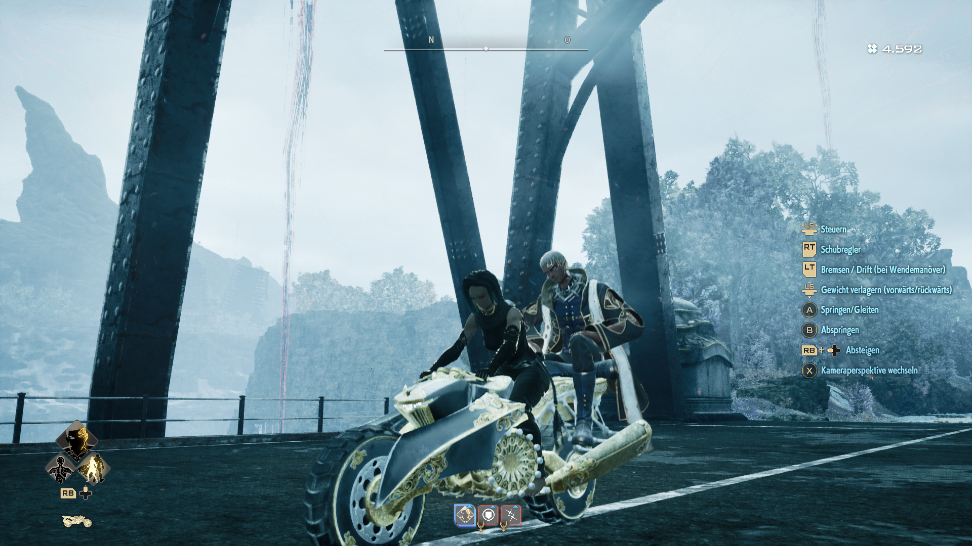 Alternativ steht euch zur schnelleren Fortbewegung ab einem bestimmten Zeitpunkt in der Geschichte ein Motorrad zur Verfügung. Mit diesem können zusätzlich einige Kluften mittels Gleitfunktion überwunden werden.
