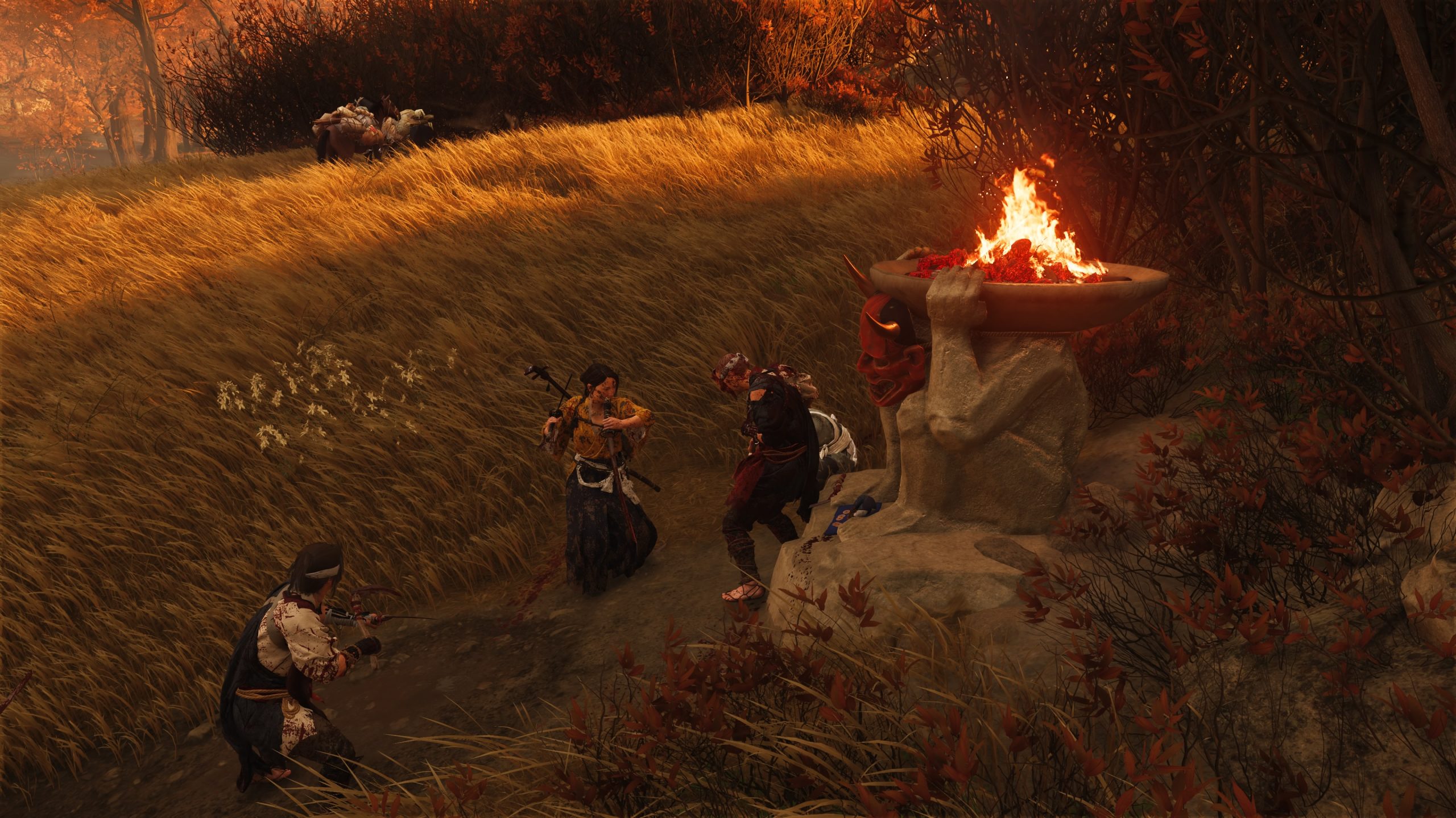 Innerhalb der Gebiete findet ihr nämlich neben der Hauptgeschichte und deren Quests, zahlreiche Ablenkungsmöglichkeiten. Mit dabei einige Bekannte aus Ghost of Tsushima. Darunter Bambusstände und heiß Quellen, die euch nach aufsuchen und absolvieren einen dauerhaften passiven Bonus bringen. An Altären der Besinnung, die ihr findet oder beim Einnehmen eines Dorfes erhaltet könnt ihr eure Fähigkeiten verbessern.
