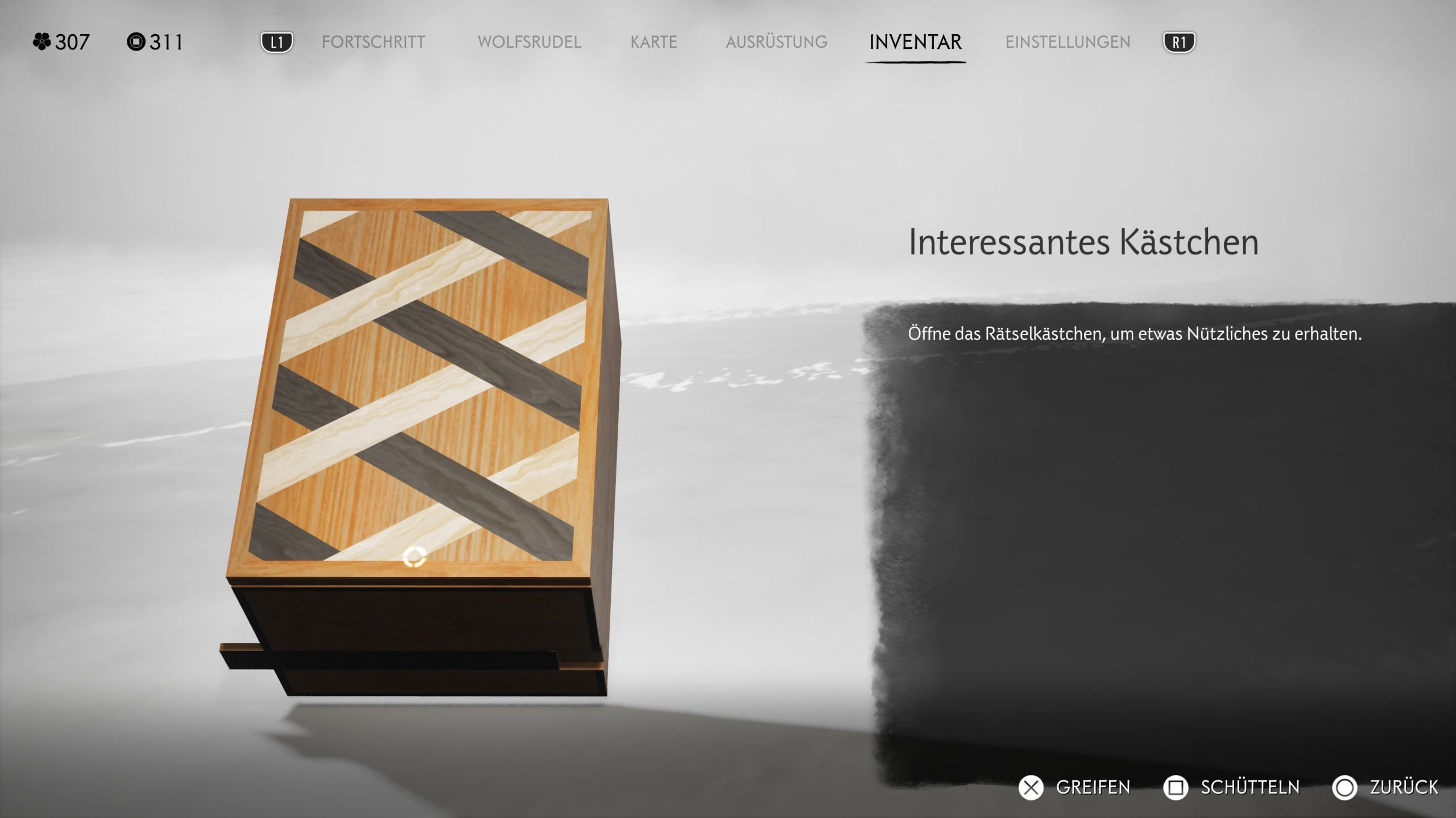 Ein weiters kleines Minispiel sind die Rästelkästchen. Diese Holzboxen verfügen über Schiebeelemente, die ihr richtig Positionieren müsst, um an den Inhalt zu gelangen. Als Inhalt winken Karteninfos oder Talismane.