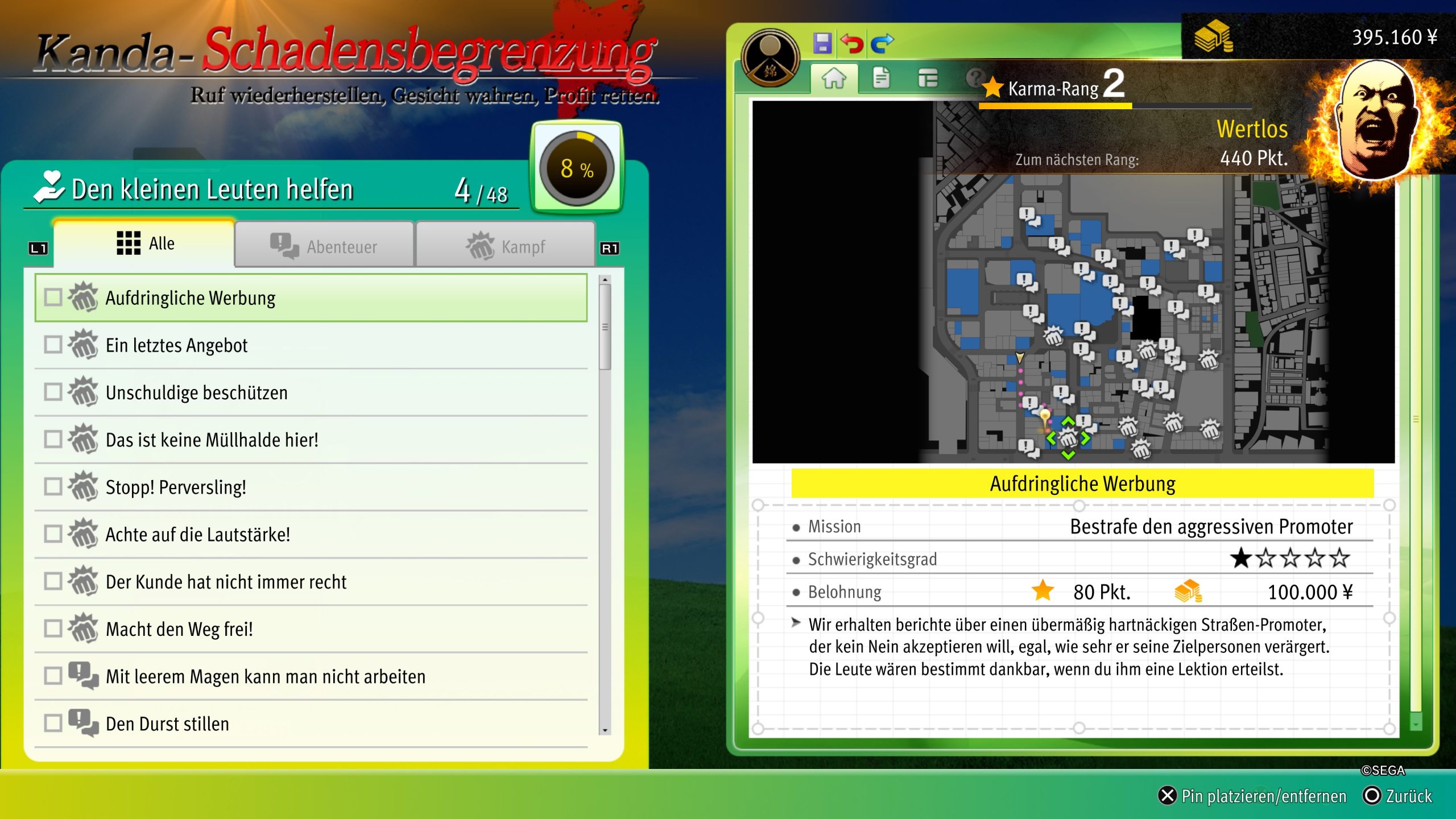 Auch Mine kann an allen Miniaktivitäten ähnlich zu Kiryu im freien Spiel teilnehmen. Außerdem gibt es ebenso zwei kürzere große Nebenaktivitäten. In der einen helft ihr Kanda, einem anderen Yakuza, sein Ansehen zu erhöhen. Das gelingt euch durch direkte Straßenkämpfe, Miniaufgaben, bei denen ihr Objekte finden und ausliefern müsst und kurze Geschichten ähnlich den Nebengeschichten von Kiryu. Durch gestiegenes Ansehen schaltet ihr außerdem Bindungsmissionen mit Kanda frei.