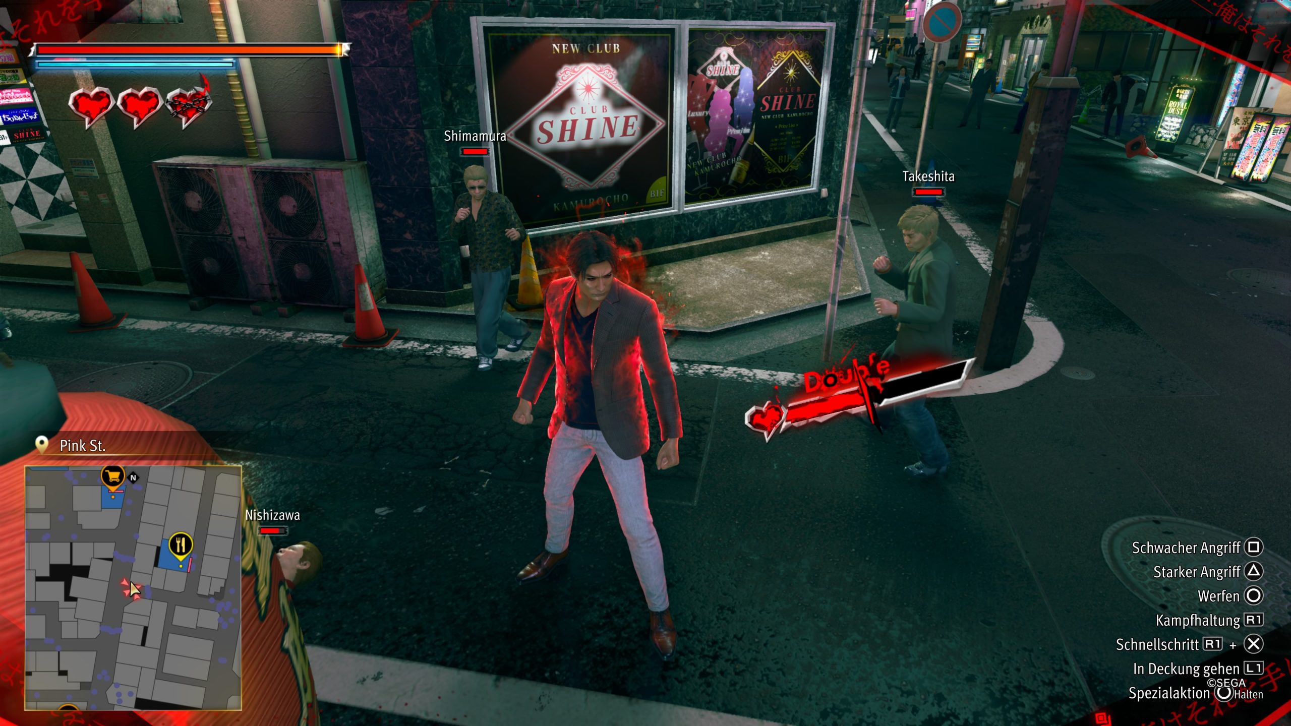 Umso mehr haben wir uns auf die neuen Storyabschnitte in Dark Ties gefreut. Hier begleiten wir Mine Yoshitaka, der bereits in der Hauptgeschichte sein Gesicht zeigt. Mine selbst hat einen dem mixed Martial Arts nachempfundenen Kampfstil. Dabei ladet ihr bis zu drei Herzen, auf die ihr je nach Fortschrittsgrad eures Charakters einzeln oder alle drei gleichzeitig aufbrauchen könnt, um eure ultimative dunkle Bindung zu aktivieren. Dabei nehmen eure Movesets deutlich an Fahrt auf und teilen ordentlich mehr Schaden aus.